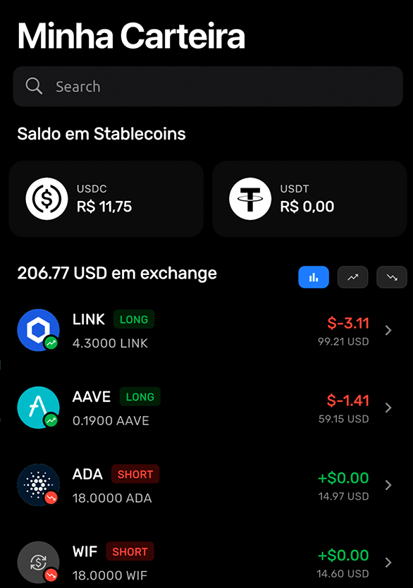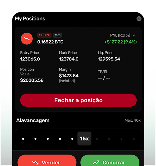 Envolve o uso de fundos emprestados para aumentar sua exposição. Com margem de até 40x, você pode abrir posições longas e curtas.
